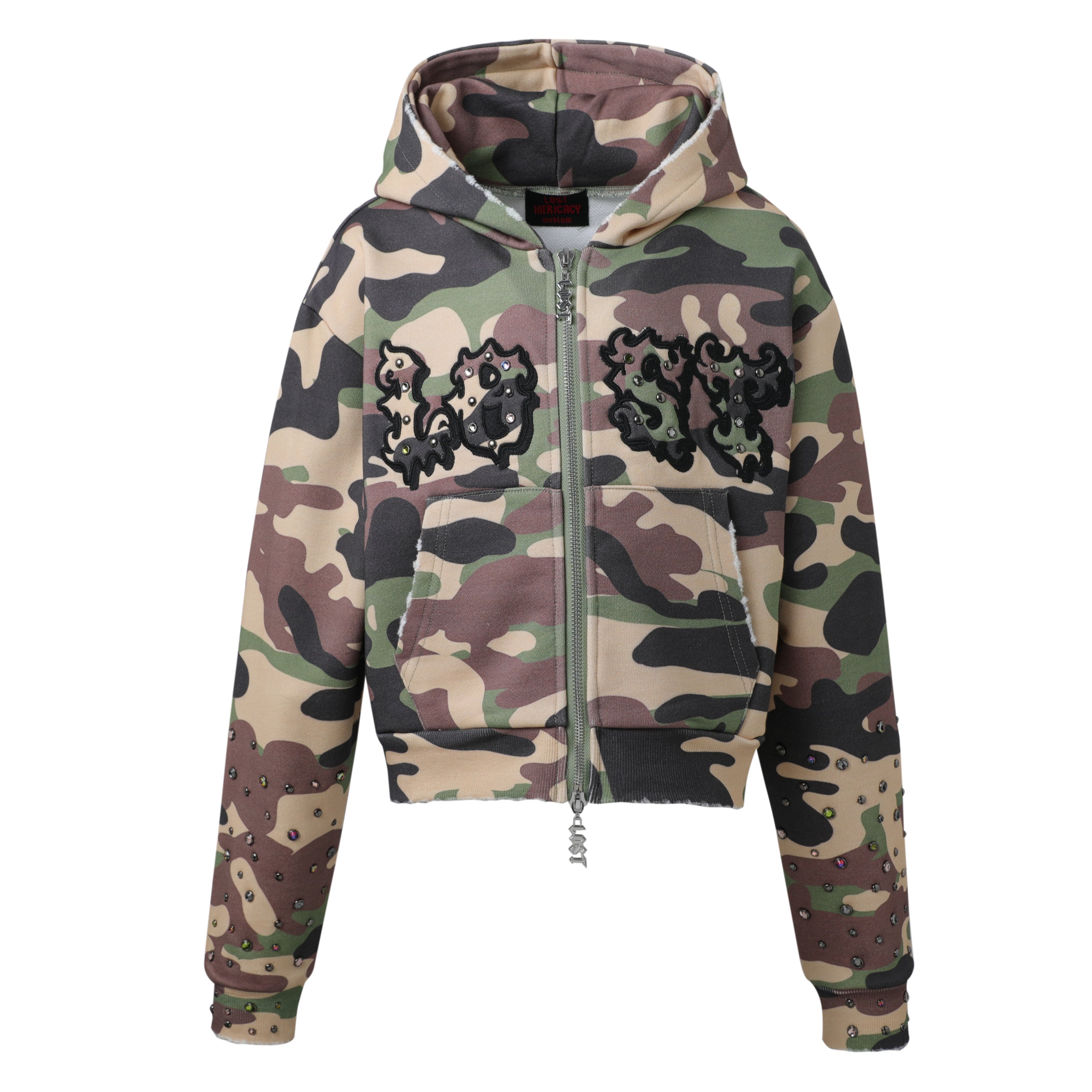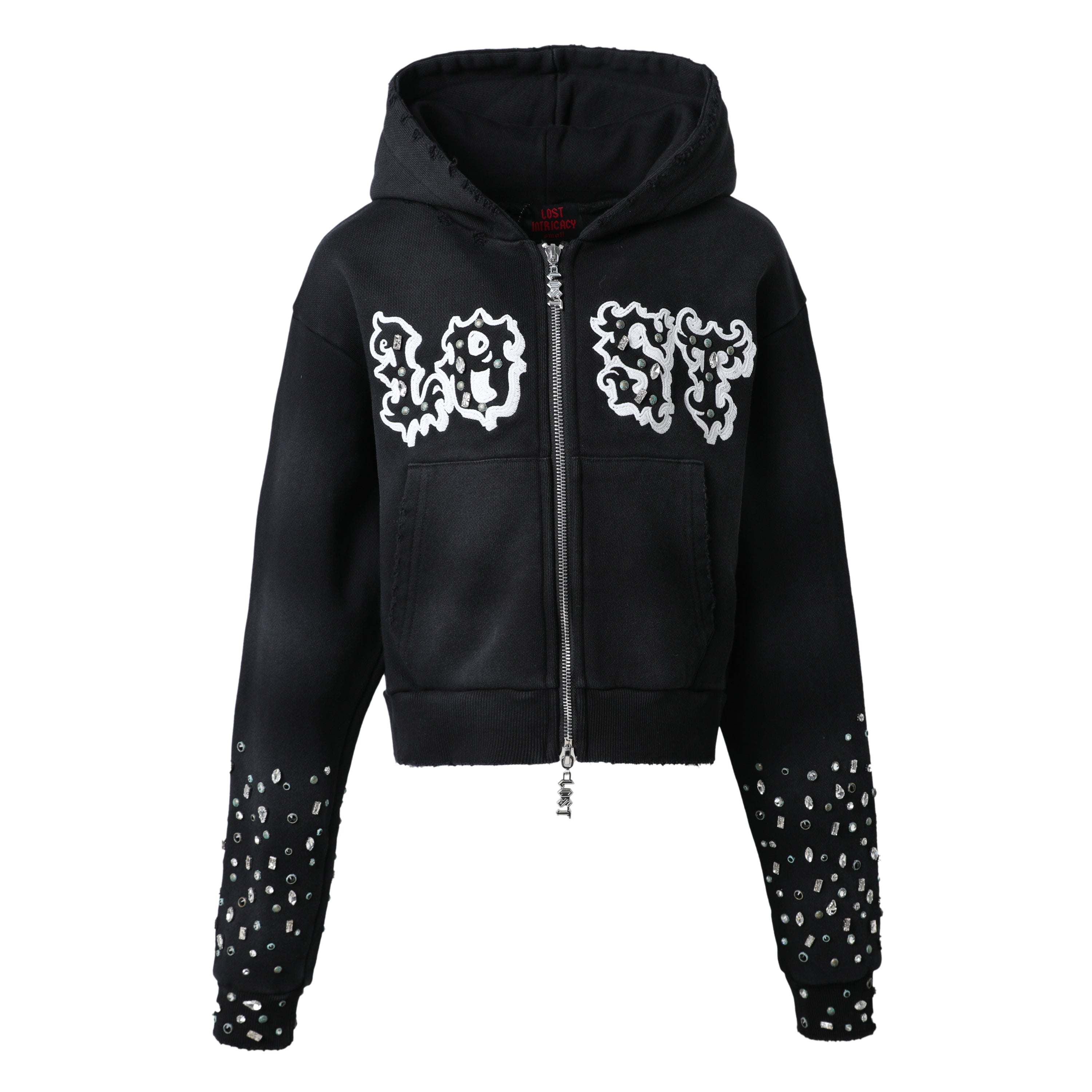 WOMENS BLACK SPLATTER RHINESTONE HOODIE