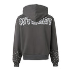 - Box fit with dropped shoulders, zip closure, and double kangaroo pockets.