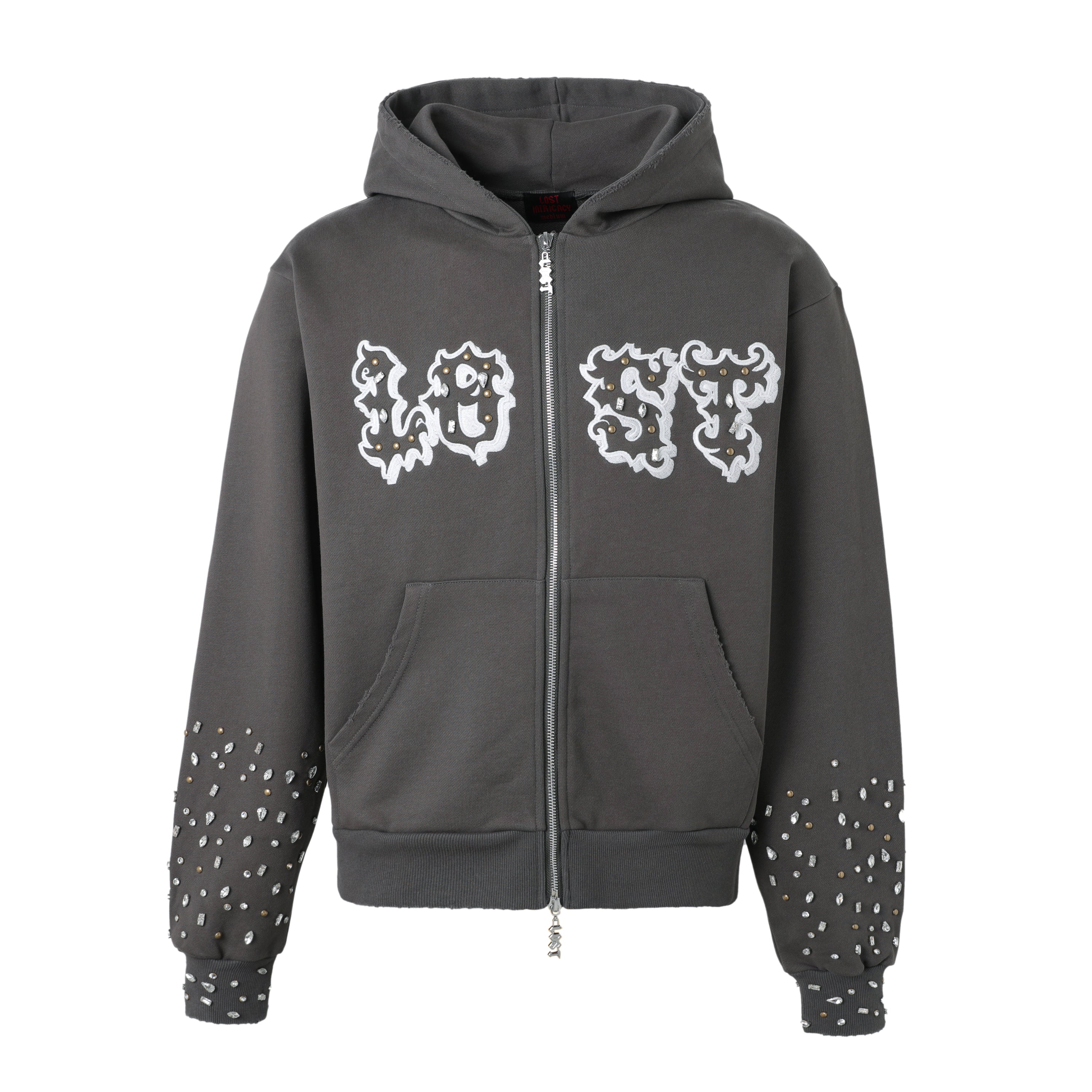 - Embroidered “LOST” graphic with crystal embellishments.